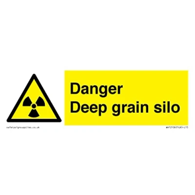 W003 : Radioactive material or ionizing radiation This sign is made from plastic rigid 3mm 3mm plastic sign with foam core. Can be screwed, stuck with adhesive or hung with a hanging kit. Not suitable for cable ties. 15 Sign Text: Danger Deep grain silo