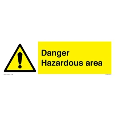 W001 : General Warning This sign is made from vinyl / sticker Air Release vinyl makes it easy to stick to flat, clean surfaces without bubbles. Not for rough, plastic or dusty surfaces. 41 landscape Sign Text: Danger Hazardous area