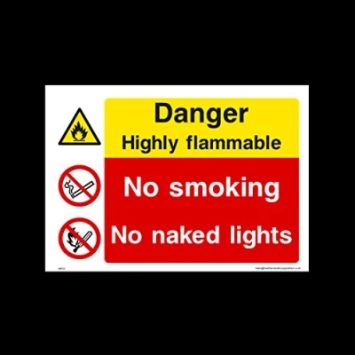 Danger Highly Flammable Plastic Sign (MP33) Danger, Caution, Flammable, Ear Protection, No Smoking, Harness, Men at work