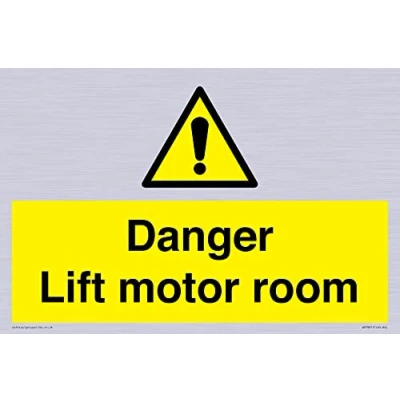W001 : General Warning This sign is made from vinyl silver sticker A4 landscape Sign Text: Danger Lift motor room