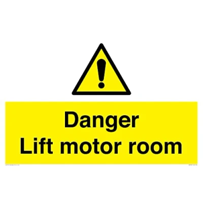 W001 : General Warning This sign is made from vinyl / sticker Air Release vinyl makes it easy to stick to flat, clean surfaces without bubbles. Not for rough, plastic or dusty surfaces. A2 landscape Sign Text: Danger Lift motor room