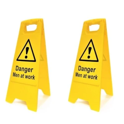 Danger Men At Work Floor Sign, Pack of 2 Heavy Duty A Boards, Double Sided Message, Lightweight & Easily Transportable