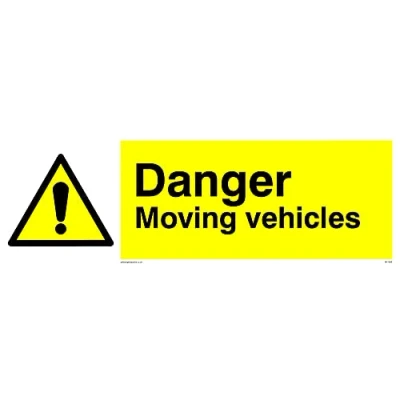 W001 : General This sign is made from vinyl high tack A stickier sticker. Uses a stronger adhesive to make it more suitable for plastic surfaces like Wheelie Bins or where the sticker might get rubbed. 15 landscape Sign Text: Danger Moving Vehicles