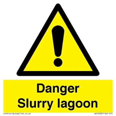W001 : General Warning This sign is made from correx corrugated plastic 5mm 5mm fluted polypropylene"Correx" style material that can be screwed, stuck, stapled or fixed to posts and fences using cable ties. Fully recyclable and perfect for temporary signs. S10 square Sign Text: Danger Slurry lagoon