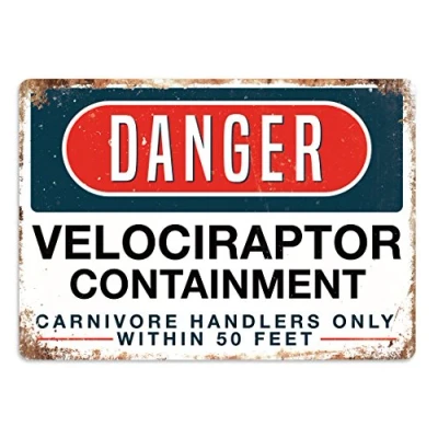 Danger Velociraptor Containment Metal Wall Plaque Inspirational Art