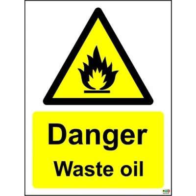 Danger waste oil sign 1.2mm Rigid plastic 300mm x 200mm Remove backing film and apply to dry, smooth, oil free surface. Digitally printed and laminated for extra durabillity