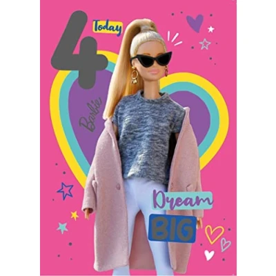 BARBIE: This Barbie Birthday Card reads on the front "4 Today Dream Big". The message inside reads "Happy Birthday", leaving plenty of room for your own message OFFICIALLY LICENSED: Our fully licensed range of Valentine's Day cards, Mother's Day cards, Father's Day cards, Christmas cards, Birthday cards and occasional cards will bring a smile those receiving them. We also sell a wide variety of fully licensed gift bags, and wrapping paper as well! ENVIRONMENTALLY FRIENDLY: Great for the Environment: Our Cards are made of FSC Certified Paper that has passed the highest Environmental Regulation checks. All cards comes with an envelope which is fully recyclable. EUROPE'S NUMBER ONE: Brought to you by Europe's Number One Licensed Publisher: Every Danilo product is 100% Officially Licensed. This guarantees the product has been approved by the Acts themselves and features the current and most up to date designs DIMENSIONS: Dimensions of this products are 7 inches X 6 inches, each card comes with a suitable sized envelope as well