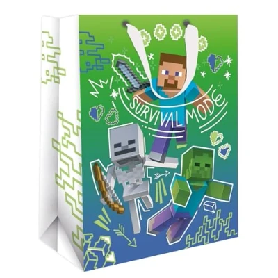 Minecraft Multipack of 5 Gift Bags is perfect for any fan of the popular game. Measuring 15CM X 15CM when opened. Each bag features vibrant and iconic Minecraft designs, including classic characters like Steve, Creepers, and other beloved elements from the blocky world. Delight young fans at your next celebration with the Minecraft Multi Pack of 5 Gift Bags/Party Bags. Each bag features long handles and are a good size to accommodate gifts, toys, treats and birthday cake for those special events and birthdays. Perfect for Any Celebration: Ideal for use at birthdays, playdates, or any Minecraft themed event to add extra excitement.