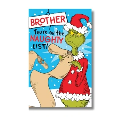 Make your brother's holiday extra merry with The Grinch Christmas Card! Featuring the classic, mischievous Grinch and a festive message just for him, this card is perfect for adding a fun touch to his Christmas celebration. High-Quality Print: The card showcases vibrant colors and a fun Grinch illustration, printed on durable cardstock that feels premium to the touch. erfect for Grinch Fans: A fantastic choice for anyone who loves Dr. Seuss’s classic character, bringing a bit of Grinchy humor to your holiday traditions.
