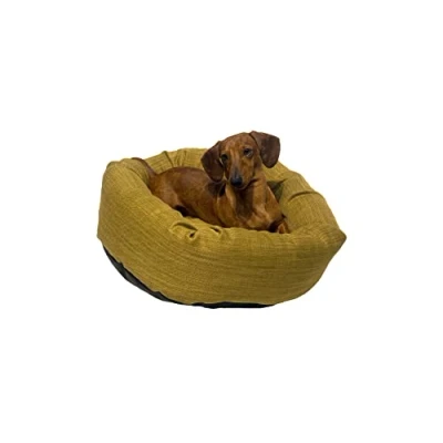 This dog bed features a variety of hard wearing fabrics filled with premium wool, creating the perfect bed for your pet! This cosy donut bed features a removable cushion for easy washing. Wash this bed at 30 degrees to keep the product looking its best. This item contains a blended recycled fibre fill, which provides a cosy and warm place for your pet. Large - 64cm