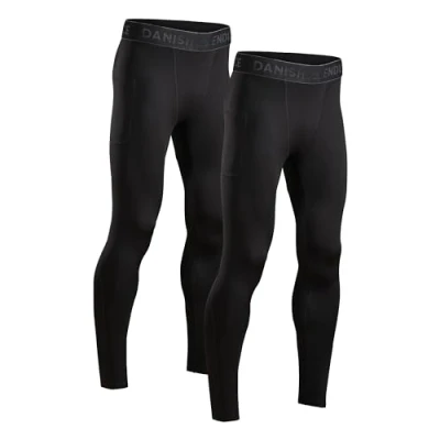 DANISH ENDURANCE Compression Leggings Men, Quick Dry Anti Chafing Running Tights, for Gym & Training, 2 Pack, Black, XXL