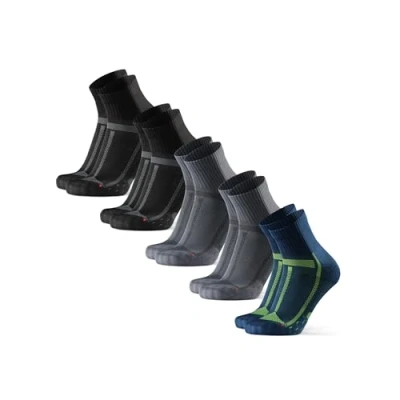 DANISH ENDURANCE Cushioned Running Socks for Long Distances, Anti Blister, Men & Women, Unisex, 5 Pack, MC (2xBlack/Grey, 2xGrey/Black, 1xBlue/Yellow), 13 15