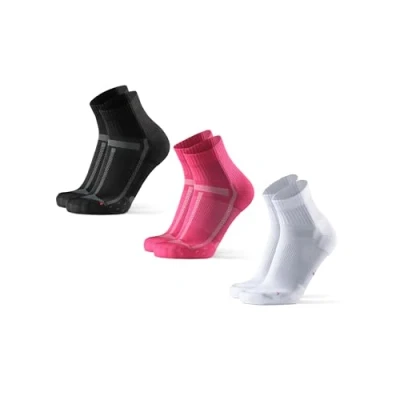 DANISH ENDURANCE Cushioned Running Socks for Long Distances, Quarter Length, Anti Blister Men & Women, 3 Pack, Multicolour (1x Black, 1x Pink, White), 6 8