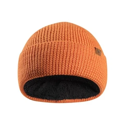 DANISH ENDURANCE Merino Wool Beanie Hat Kids, Warm Fleece Lining, Thermal Autumn Winter Hats for Boys & Girls, Knit, Unisex, Orange, One Size