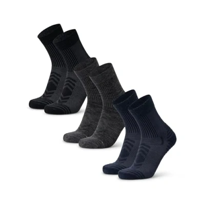 DANISH ENDURANCE Merino Wool Hiking Socks with Light Cushioning, for Men & Women, Unisex, 3 or 5 Pack, Multicolor (1x Black, 1x Dark Grey, Navy), 48 51