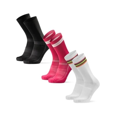 DANISH ENDURANCE Performance Crew Cycling Socks, Cushioned Bike 3 Pack for Men and Women, Multicolour (1x Black, 1x Pink, White), 9 12