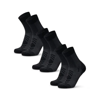 BREATHABLE MERINO WOOL: Our light merino wool socks are thermoregulating and have sweat-wicking ventilation lanes to ensure that your feet stay fresh, dry and comfortable in any weather LIGHTWEIGHT OUTDOOR SOCKS: Our light, antibacterial hiking socks feature targeted cushioning to reduce the risk of blisters and sore feet. Great for hiking, trekking, outdoor adventures, walking, travelling or everyday MADE IN EUROPE: Our hiking socks are designed with endurance athletes to ensure the highest standards of performance and quality. The socks are fairly produced in Portugal PREMIUM MATERIALS: Made from 38% Wool (Merino), 30% Acrylic, 30% Polyamide, and 2% Elastane. OEKO-TEX standard 100 certified. Free from harmful substances. Machine washable at max. 40°C. No tumble dry ANTI-HOLE GUARANTEE: Got a hole in your socks within the first year after purchase? We will send you a replacement for free. If you have any questions, our customer service is always happy to help you