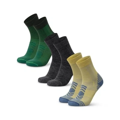 DANISH ENDURANCE Walking Socks Merino Wool Lightweight, Hiking Socks, for Men & Women, Unisex, 3 Pack, Multicolour (1xGreen, 1xDark Grey, 1xYellow) 13 15