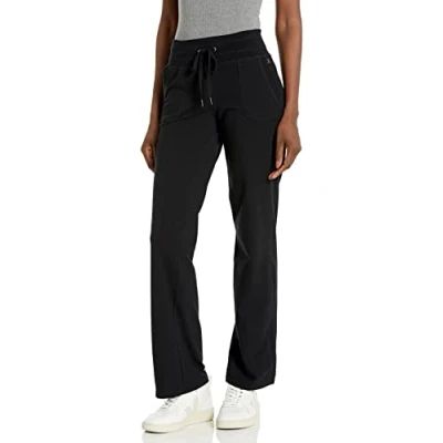 Cotton/Spandex Construction made with durable and stretchy fabrics. Our Essential Cotton Spandex blend keeps you cool and dry while providing long lasting comfort, support and complete coverage Slimming High Rise ribbed elastic waistband with adjustable drawcord that adds support while contouring your shape. Providing gentle compression leaving you with a cool smooth feel Danskin Women's Essential Straight Leg Drawcord Athletic Pants with rib trim and side seam details providing a secure, flattering fit. Convenient Side Slanted Pockets Ultra comfortable, soft, lightweight fabrication. Perfect for yoga, exercise, fitness, any type of workout, or everyday use Moisture wicking finish and 4-way stretch. 32" inseam