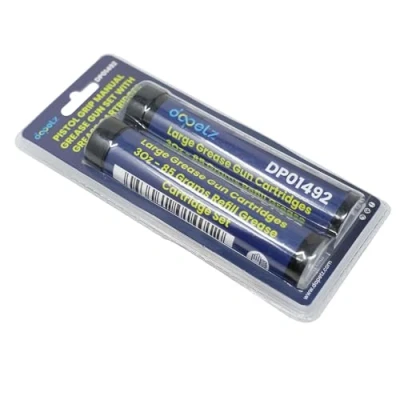SUITABLE FOR: The grease gun cartridges are suitable for Grease Guns and most greasing and lubrication requirements. MATERIAL: The product is made of mineral oil thickened by a high-grade fatty acid soap thickener, added with antioxidant and rustproof additives. WIDE USAGE: The grease gun cartridges can be widely used for lubrication of light or heavy load machinery, within the temperature range of -20 to 120°C and the high-temperature frictional parts of industries like metallurgy, paper making, chemical, automobile, textile, printing, and dyeing, machine, and railway, etc. CAPACITY: 2 replacement cartridges suitable for use with a 3oz/85gram capacity grease gun. WHAT YOU GET: 2 Pieces of Large Grease Gun Cartridges Set