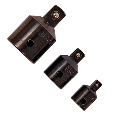Made from heat-treated Chrome Molybdenum alloy steel for superior durability and long-lasting performance. Rust-proof Manganese Phosphate coating protects adapters from corrosion, ensuring reliability in harsh environments. Smart spring-loaded detent ball system prevents dropping, providing secure attachment and reducing fatigue during use. Compatible with bent rod, ratchet, electric, and pneumatic wrenches for versatile screw and nut applications. Includes a 3-piece Impact Socket Reducer Set, with sizes 3/4", 1/2", 3/8", and 1/4".