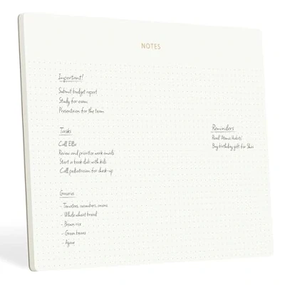 DESK NOTEPAD & MOUSE PAD COMBO: Elevate your workspace with our unique desktop note pad that doubles as a mouse pad. Keep your desktop clutter-free and always have a space for quick notes, be it for brain dump notepad sessions or immediate to-do lists. 50 tear-away sheets with a subtle dotted layout, adorned with gold foil embossing. A premium paper pad that seamlessly blends functionality with style. A TOUCH OF ELEGANCE - While apt for practical tasks like computer notes, its opulent design ensures a seamless fit in any refined setting. Elevate your workspace with the luxurious Notes Mouse Pad—the zenith of office desk accessories. Not merely for writing, but a standout in your collection of office accessories for women and men. With this, you're embracing the zenith of memo & scratch pads: the ideal desktop notepads for work. DISTINCTIVE GOLD FOIL DESIGN: Each page, be it for a memo, a shopping list, or a daily to-do, is artfully debossed with radiant gold. Every note or scribble becomes a reflection of life's invaluable moments. Ideal for those who search for a stylish computer accessories, home office accessories, cute desk accessories, gold desk accessories for women office, aesthetic office supplies, cute office supplies or a minimalist gold office accessories. LUXURIOUSLY DOTTED PAGES: The subtle dots offer structure, catering to structured notes, brain dumps, as well as spontaneous bursts of creativity. This mouse pad notepad is the ultimate desktop memo pads, ensuring you have ample space to jot down your thoughts without the need for additional paper pads, to do list pad or desk note pads. PREMIUM WORKSPACE AESTHETIC: Ideal for various professional settings, this memo pad complements your business supplies, acting as a functional secretary notepad or a general business notepad. A must-have among work from home essentials, office essentials, office supplies for women and small business supplies. VERSATILE & PRACTICAL: The 9.8 x 7.9 inch dimension provides ample space for all your memo notepad needs. An indispensable tool for work from home setups, online school essentials, and even as a college school supplies staple. Perfect for note taking supplies, this writing pad is all you need for efficient jotting. SUSTAINABILITY AT ITS FINEST: Crafted with 100% recycled, FSC certified paper, it boasts a robust 100 GSM thickness. Marrying cute stationary aesthetics with environmentally-friendly design principles, this mouse pad with note pad ensures you stay organized without compromising on looks. IDEAL GIFT CHOICE: Looking for cute notepads, dot grid notepad, landscape notepad or a to do list notepad as a gift? This product suits a range of needs and tastes, making it perfect for gifting to students, professionals, or anyone in between. It is a great office gifts for women as a cool office gadgets for desk. A unique gifts for women as it is a real one of the best office must haves women desk. SUITED FOR EVERY OCCASION: Be it for grad school essentials, taking down tasks on a things to do notepad, or jotting pointers during a business meeting, this mouse pad notes tool is versatile for every scenario in which you will be needing a pads of paper. 100% SATISFACTION GUARANTEED: Our commitment to quality is unwavering. If our mouse pad notepad doesn't match your highest expectations, reach out for a complete refund. Your satisfaction remains our top priority.