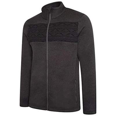 Polyester knit effect fleece with contrast marl and fair Isle panels Full length zip with inner zip and chin guard 2 x lower zip pockets