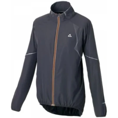 Hybrid wind shell formed of polyester and a stretch back panel Wind resistant fabric Water repellent treatment Weighs less that 180g (Size L) Scooped Hem Stretch bound cuffs with thumb loops Concealed zipped security pocket Reflective stencil and tape