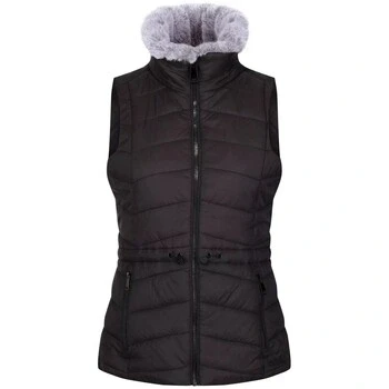 Filling: Faux Down. Design: Quilted. Compressible. Fabric Technology: Insulating, Warmloft, Water Repellent. Neckline: Faux Fur Collar, High-Neck. Sleeve-Type: Sleeveless. Pockets: 2 Front Pockets, Zip. Fastening: Full Zip. Waistline: Drawcord.