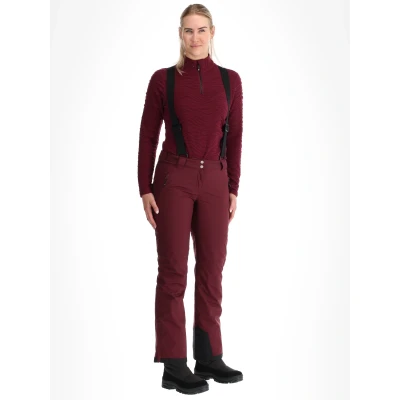 The Dare2b Diminish insulated ski pants for women are made to provide protection and comfort on the slopes. These insulated ski pants have an impressive water column rating of 30,000 mmH2O and a breathability rating of 30,000 gr/m²/24h, ensuring you stay dry and comfortable during your winter adventures. Constructed with a slim fit design, these pants feature fully taped seams and preformed knees for enhanced mobility. The use of 4-way stretch material ensures flexibility while maintaining waterproof, windproof, and breathable properties. Made from durable polyester with ARED technology and treated with PFC-free DWR (Durable Water Repellent), these pants offer reliable performance in harsh conditions. Practical features include adjustable elastic suspenders that can be detached when not needed, zippered pockets for secure storage, snow gaiters at the leg ends to keep out snow, and zippers for easy boot access. The waist is designed with belt loops, an adjustable high back for added warmth and support. This product is ideal for female skiers seeking dependable gear that combines technical excellence with style. Whether you're tackling challenging runs or enjoying leisurely descents, the Dare2b Diminish insulated ski pants deliver exceptional functionality tailored to meet the demands of winter sports enthusiasts.