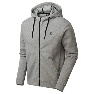 Dare2b Mens Modulus Full Zip Hoodie in Light Grey Jersey Cotton Jacket Soft to wear with Ribbed Cuffs