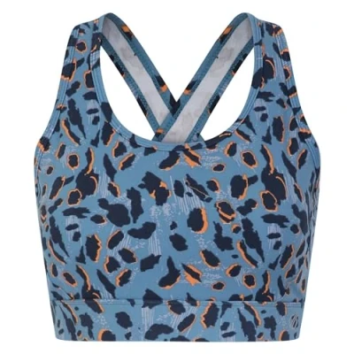 The Dare 2b Swift II Sports Bra in Niagara Blue Animal Print is made from Q-Wic Plus recycled fabric that accelerates drying, moves moisture to the surface and repels odour-causing bacteria to help you stay fresh. The cross-over strap design on the gym bra, plus the removable cups create a secure and comfy, as well as stylish, fit. It's designed for medium-impact sports, so it's great for yoga or strength training.Made from 82% Recycled Polyester 18% Elastane.