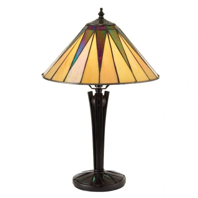 Dark 1 Light Small Table Lamp Black, Tiffany Style Glass, E14