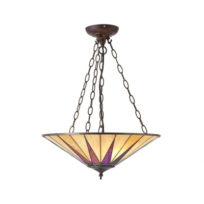 Dark 3 Light Large Ceiling Pendant Bronze, Amber, Tiffany Glass, E27