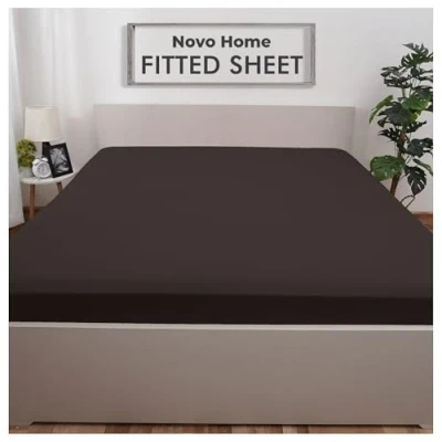 Dark Brown Fitted Sheet Double Beds (135x190 cm, Deep 35 cm) Pack of 1 Soft Microfibre Elasticated Cover Breathable, Durable & Easy Care Bottom