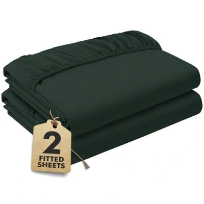 Dark Green Fitted Sheet Super King Beds (180x200 cm, Deep 35 cm) Pack of 2 Soft Microfibre Elasticated Cover Breathable, Durable & Easy Care Bottom