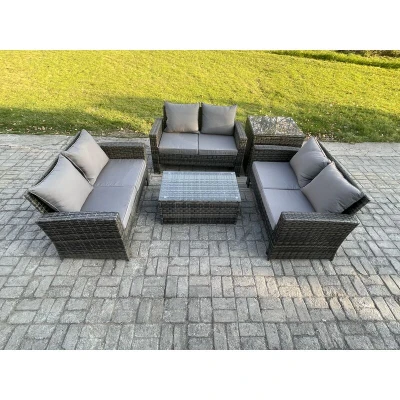 Dark Grey 6 Seater Outdoor Rattan Garden Furniture Set Patio Love Sofa Rectangular Coffee Table with Side Fimous