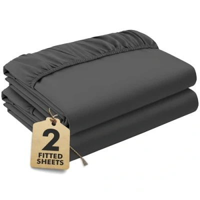 Dark Grey Fitted Sheet Double Beds (135x190 cm, Deep 35 cm) Pack of 2 Soft Microfibre Elasticated Cover Breathable, Durable & Easy Care Bottom