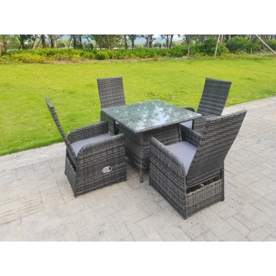 Dark Grey Mixed Outdoor pe Wicker Rattan Garden Furniture Reclining Chair And Table Dining Sets 4 Seater Square Tempered Glass Fimous