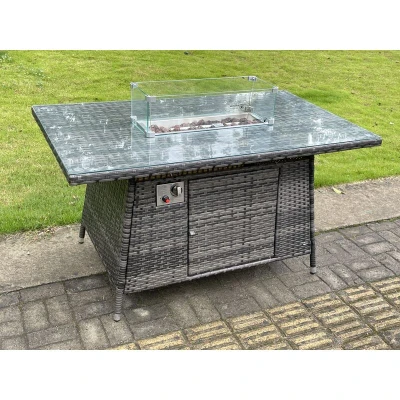 Dark Grey Rattan Fire Pit Table Dining Gas Heater Garden Furniture Accessory Patio With Clear Tempered Glass Fimous