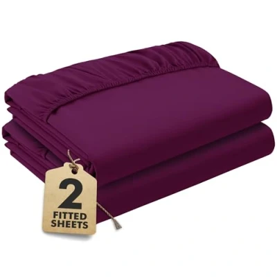Dark Purple Fitted Sheet Double Beds (135x190 cm, Deep 35 cm) Pack of 2 Soft Microfibre Elasticated Cover Breathable, Durable & Easy Care Bottom