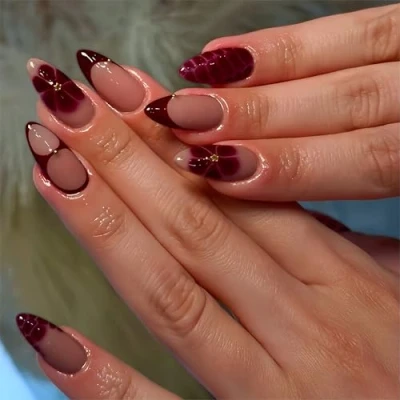 3D Handmade French Nails Press on: The package include 24 pcs 3d effect gel press on nails for women & a nail file & 24 pcs jelly glue stickers. (Durability of jelly glue sticker is NOT as good as liquid glue, but it makes fake nails reusable. Please use suitable glue according to different scenes) Almond French Tip Nails Salon-Quality: These acrylic nails press on are made of great resin material, which is natural, safe and sturdy will not hurt your hands, No matter how much you use your hands or expose your nails to daily activities, our Maroon red press on nails french tip will maintain their vibrant color and stunning shine Easy Fake Nails Set: After trimming and cleaning your natural nails, select the right size of our high quality medium almond nails glue on and apply them on your nails, then press on your nails for 10 seconds. Now you have beautiful nail designs Comfortable to Use: The stick on gel nails almond medium are designed according to the curvature of female nails, with moderate thickness, natural fit, more natural effect. Our french press on nails almond is comfortable to use Various Occasions: These medium almond glue on nails for women can make you stand out at parties, dates, weddings, proms, and travel. You can wear wine red false nails short on Prom, Party or any excellent occasion, nice gift for women and girls