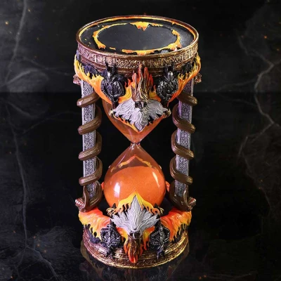 Unleash your inner hero with the captivating Dark Souls Gwyn Sand Dial, a stunning collectible that celebrates the legendary Lord of Cinder. This intricately crafted sand timer features enchanting fire-themed detailing, drawing you into the mythical world of Dark Souls every time you take a glance. Its unique coiled serpent pillars and embossed patterns create an artistic flair that makes this piece an absolute showstopper. Made from premium resin and hand-painted to perfection, this piece embodies exceptional craftsmanship with every detail meticulously designed. The aged metallic finishes not only elevate its aesthetic charm but also give it a timeless quality that collectors and gamers alike will treasure. It encapsulates the spirit of resilience and epic battles, inviting you to explore the lore every time the sands flow. This beautifully rendered sand timer serves as an eye-catching addition to any gaming enthusiast's collection or a striking decorative piece for your home. Whether you're marking the passage of time or simply showcasing your passion for the Dark Souls universe, this piece is sure to spark intriguing conversations and admiration from fellow fans. Step into the world of Dark Souls with this extraordinary Gwyn Sand Dial, where every grain of sand tells a story.