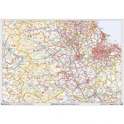 A High Quality Postcode Sector Wall Map. Showing the Entire DL Postcode Area, with Precise Boundaries and Clear Postcode Labels on a Detailed Map Background. Double size 2A - 1682 mm x 1189 mm Plastic Coated waterproof / wipeable