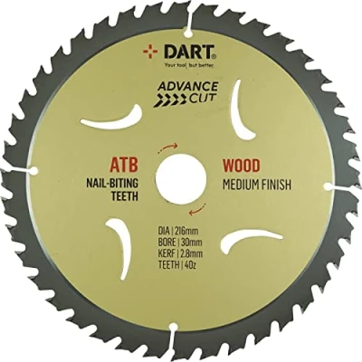 DART ATB Wood Saw Blade 216Dmm x 30B 40Z Circular Saws with Medium Finish TCT Blades for Mitre Cutter Industrial Use Sawblades