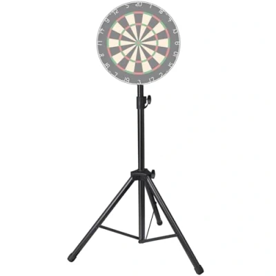 Tripod DartBoard Stand Material: Tripod Dartboard stand is made from stainless Steel, ensuring durability and longevity. It's exceptionally resistant to , making the standing board surround ring for both indoor and outdoor gaming sessions Adjustable Height Dartboard Stand: Dart board stand tripod features adjustable size after assembly 122‑210cm, dartboard holder is adjustable with lockable height adjustment to achieve the perfect dartboard height. accommodating players of different heights Dartboard Stand:Play Anywhere with It's Folding Tripod Stand and Easy-to-Fit Bracket,The Perfect Darts Solution for your Home, Office or Public Venue Dart Board Stand Stable Design: Featuring a sturdy tripod base, dartboards Stand ensures the utmost stability during use. The portable tripod is reliable and stable Easy to Assemble and Carry: Dart Board Stand easy to Assemble,ensuring you can start playing right away.Dartboard stand bracket is ideal for players looking for their very own freestanding board, rather than mounting it on their walls. The portable design allows for easy setup and removal