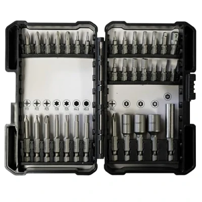 COMPLETE SET WITH MAGNETIC BIT HOLDERS: Elevate your toolkit with the DART Standard Driver Bit Set, featuring 33 essential pieces, including both 25mm and 50mm bits, alongside multiple socket adaptors (6mm, 8mm, and 10mm) and a magnetic bit holder, ensuring you're equipped for a wide range of screw-driving tasks. 25MM BITS INCLUDED: The set's 25mm bits include PH1, PH2, PZ1, PZ2, PZ3, T8, T9, T10, T15, T20, T25, T30, H3.0, H4.0, H5.0, H6.0, SL1.8x5.5 and SQ2, offering a diverse range of sizes and types for any screw-driving task. 50MM BITS INCLUDED: This set’s 50mm bits include PH2, PZ1, PZ2, PZ3, T20, T25, H4.0 and H5.0, providing ample options to handle various screw-driving needs with ease. VERSATILE COMPATIBILITY: Seamlessly adapt to different screw-driving needs with the included 25mm Socket Adaptor. SECURE NUT SETTING: Make quick work of fastening tasks with the 1/4" Magnetic Nut Setters (48mm), ensuring nuts stay firmly in place during installation, providing you with reliable and efficient results., Manufacturer: DART