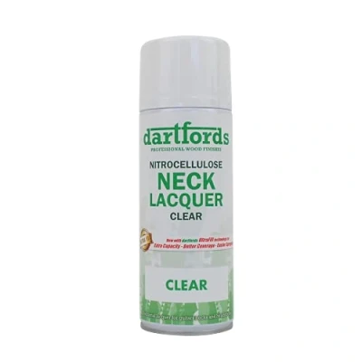 Specially formulated nitrocellulose lacquer for use on guitar necks, in both clear and a range of subtle tints Contains additional compounds for a satin sheen and smooth feel in hand Ready to use aerosol spray can - shake and go! Colour neck lacquers can be used straight on to bare wood, the finished with the Clear Nitrocellulose Neck Lacquer Aerosols feature our proprietary UltraFill technology giving up to 50% more coverage than standard aerosols, and a more spraygun-like consistency, Manufacturer: dartfords