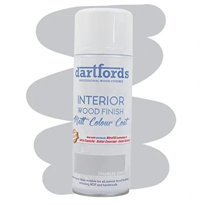 Spray on wood finish for furniture and craft projects, great for upcycling or giving old pieces a new look Specially formulated for use on interior wood of all types including MDF, plywood and solid woods such as pine and oak Simple and easy to use aerosol spray can gives quick even coverage without any brushes or pots to clean up afterwards. Each can will cover approximately 1 square metre For best results, and especially if covering a darker colour, use our Interior Wood Primer first This paint has a subtle matt finish. For added protection, or to give the finish a satin sheen or gloss shine, use our clear Interior Wood Lacquer over the top, Manufacturer: dartfords