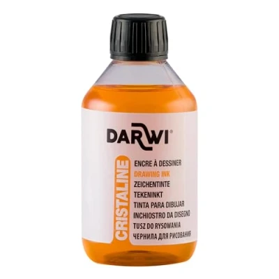 DARWI DA2300250700C A Bottle of Transparent and Bright Drawing Ink for Kids Yellow Colour 250 ML CRISTALINE Watercolour After Drying